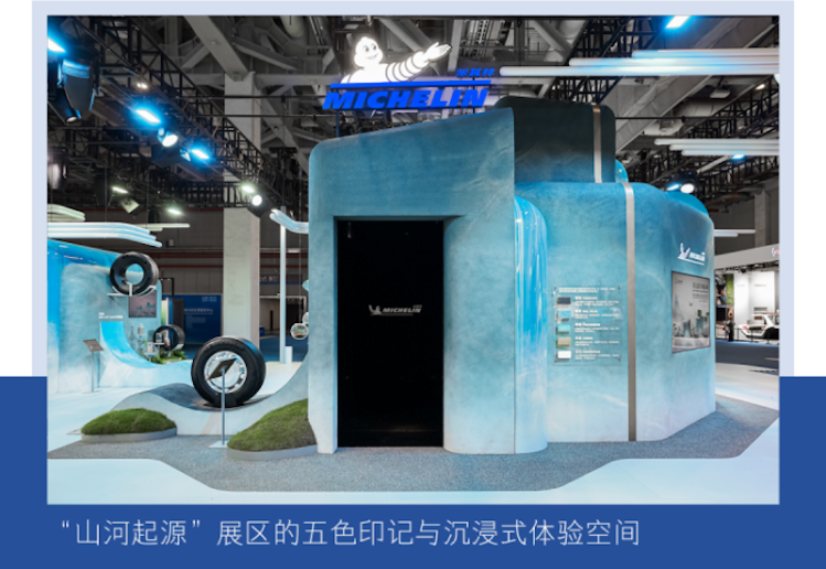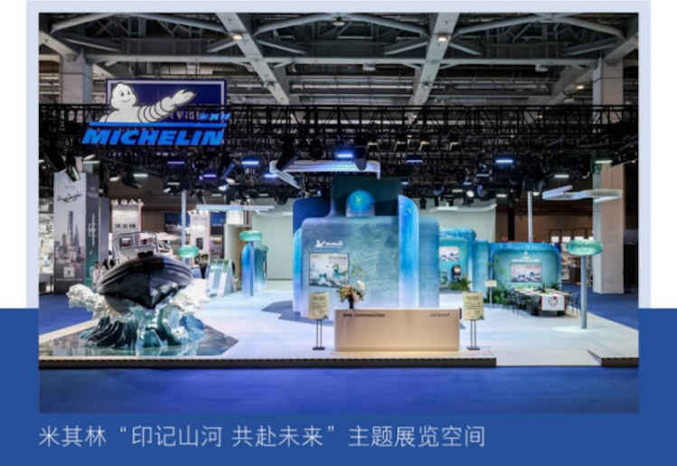 今年進博會,米其林以中國水墨與山河意境為設計靈感,融合未來科技感,首次以複合物為核心敘事,將抽象的複合物科技轉化為可感知、可互動的沉浸式創新體驗。展臺從輪胎的五種核心材料出發,提煉出五色印記,既象徵材料性能,也呼應山河意象,材料的精密融合鑄就輪胎這一終極複合物;自然元素的壯麗交融,融繪成永續山河的壯闊畫卷,傳遞米其林對可持續發展的堅定承諾。