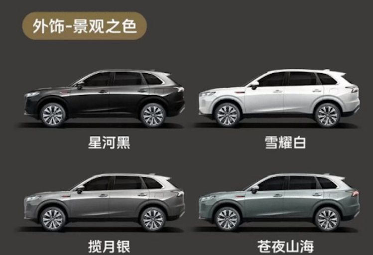 紅旗HS6 PHEV外觀造型大氣典雅,高山飛瀑式進氣格柵採用封閉式設計,大燈狹長並帶有鍍鉻裝飾,搭配車頭紅旗LOGO,營造出氣勢感。車身上揚的腰線使得整車尺寸雖大但並不呆板。車門把手採用傳統設計,車門也採用全包式設計,方便日常使用。新車長寬高分別為4925/1970/1740mm,軸距為2925mm。鳳翎尾尾燈採用銳利切面晶體與漸變燈帶相融合的設計,光影效果出色。新車提供四種外觀顏色,分別為星河黑、雪耀白、攬月銀及蒼夜山海。