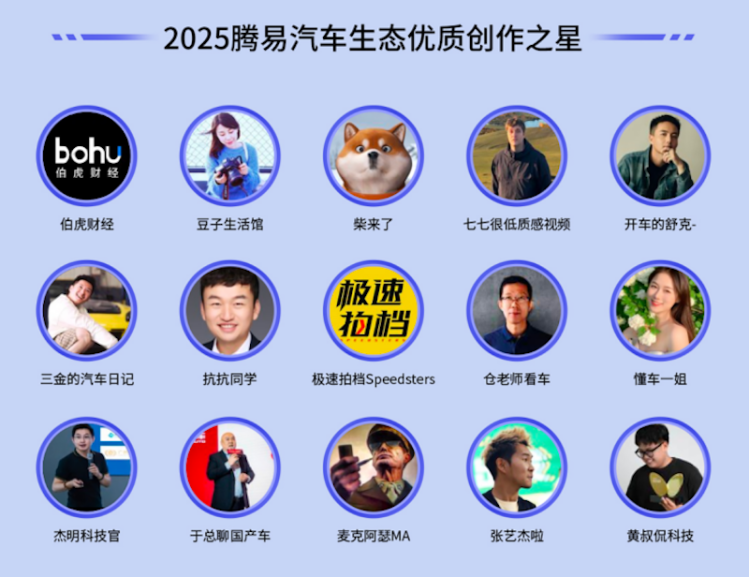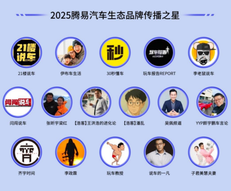 十五位創作者獲“2025騰易汽車生態星選之星”,旨在表彰在商業變現與內容品質方面實現雙優的創作者,他們是生態中兼具市場價值與內容口碑的中堅力量。