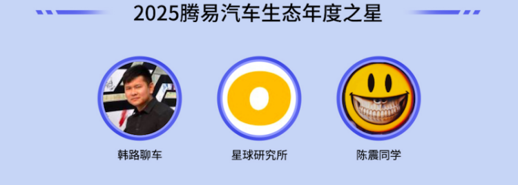 三位創作者榮獲“2025騰易汽車生態年度之星”,授予在專業深度、視覺創新與人格化IP建設等方面樹立行業標杆,具有廣泛影響力的典範創作者。