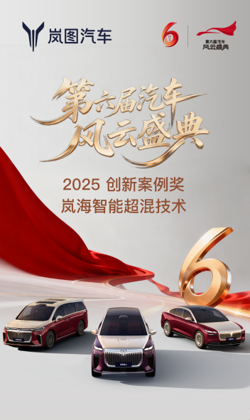 近日,由中央廣播電視總臺主辦、財經節目中心特別策劃的汽車行業年度“車晚”——第六屆《汽車風雲盛典》盛大啟幕。憑藉劃時代的嵐海智慧超混技術與最霸氣的華係旗艦SUV嵐圖泰山,嵐圖汽車一舉斬獲“風雲2025年度創新案例”與“2025風雲車”,成為本屆盛典中極少數技術與産品雙線登頂的品牌。
