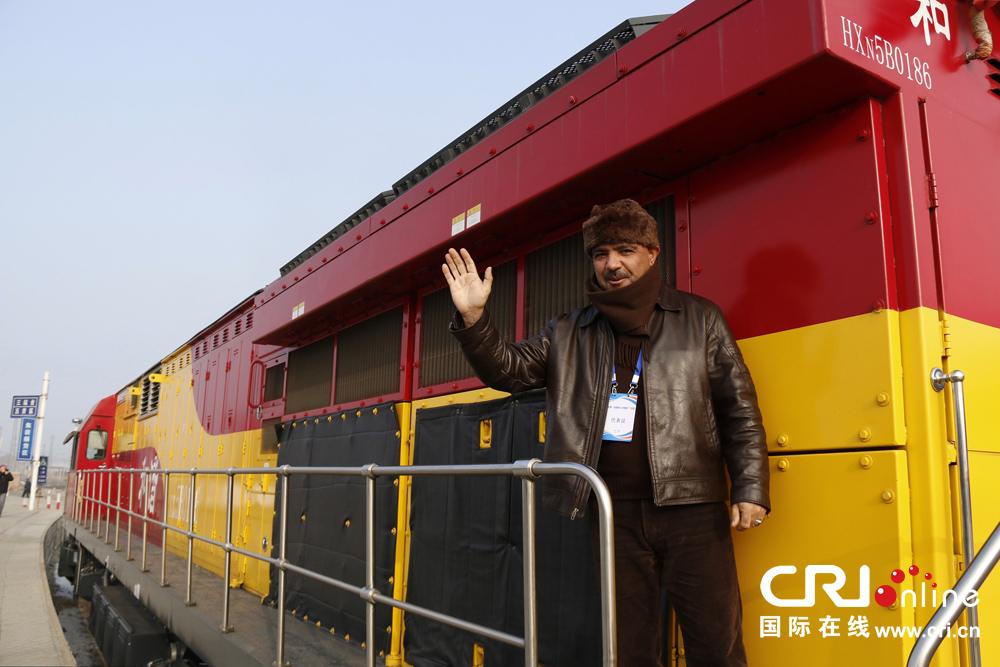 約旦作家拉姆齊·谷茲維登上即將出發的中歐班列留念