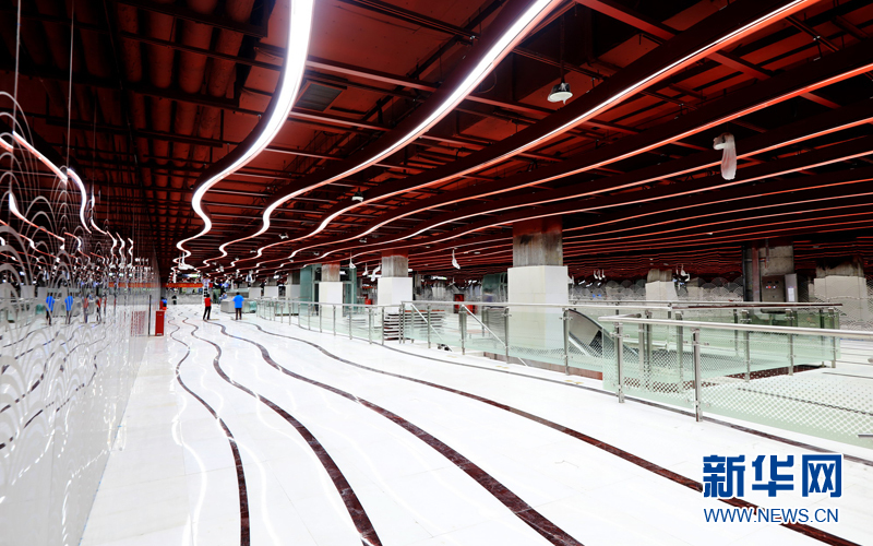 知識城站以大量的鋁合金和LED燈具來體現知識的現代美感。新華網發