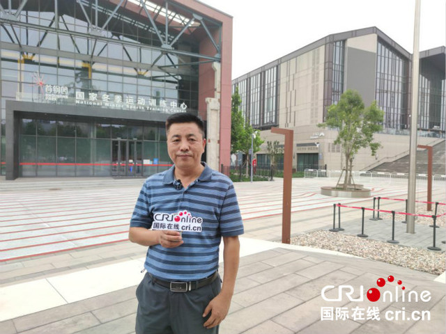北京首鋼園運動中心運營管理有限公司副總經理郭曉民在冬訓中心外接受採訪