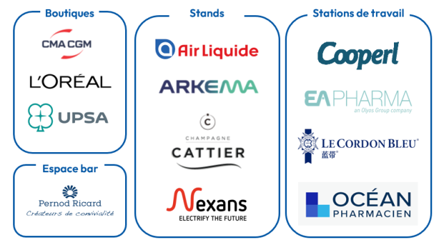 除參展商外,另有27家法國企業及一個大區將其品牌形象與法國國家館緊密關聯。