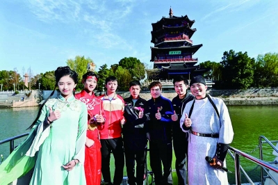 來寧參加2025賽季中國乒乓球俱樂部超級聯賽總決賽的“乒乓球男團”,和“李白”“寶玉”“黛玉”一起遊外秦淮河。南京文旅集團供圖