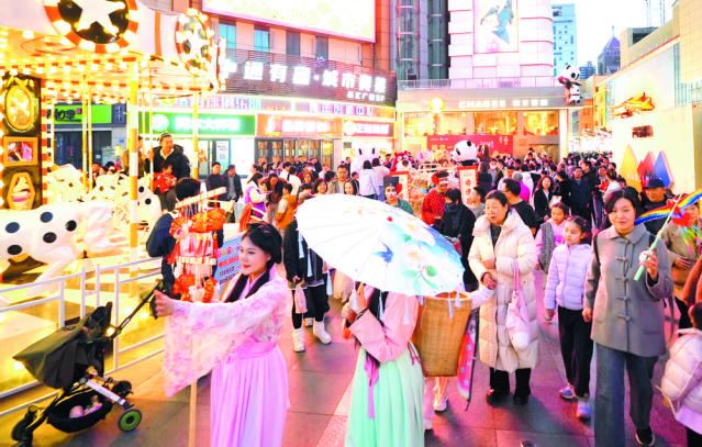 各類特色首店集中亮相,吸引大批年輕人前來打卡體驗。“以前過年逛來逛去都是老樣子,今年好多新店舖、新玩法,既能感受傳統年俗,又能體驗時尚消費,這正是我們年輕人喜歡的過年方式。”正在挑選飾品的“00後”大學生李晴冉説。