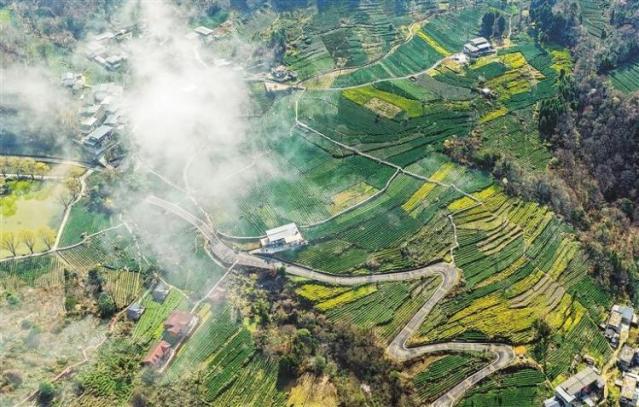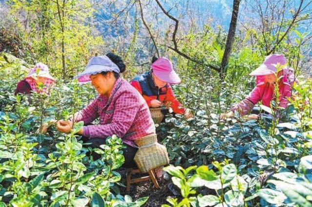 3月1日,甘肅省隴南市文縣碧口鎮馬家山村的茶山上,茶農採摘早春茶。(甘肅日報記者 高檣 丁凱)