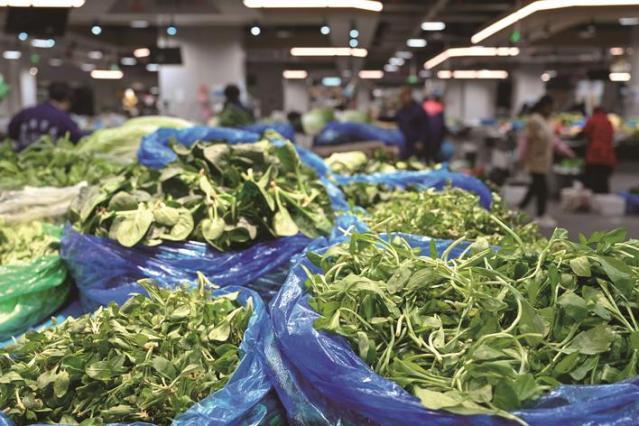 近日,在嘉興市區荷花堤市集,馬蘭頭、莧菜、春筍等各類時令春菜搶“鮮”上市,吸引了不少市民前來選購,鮮嫩水靈的春菜讓居民的菜籃子裏裝滿了“春天的味道”。(嘉興日報記者 張啟帆 圖)
