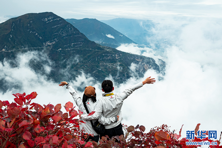 遊客沉醉於巫山紅葉美景。新華網發(簡毅 攝)