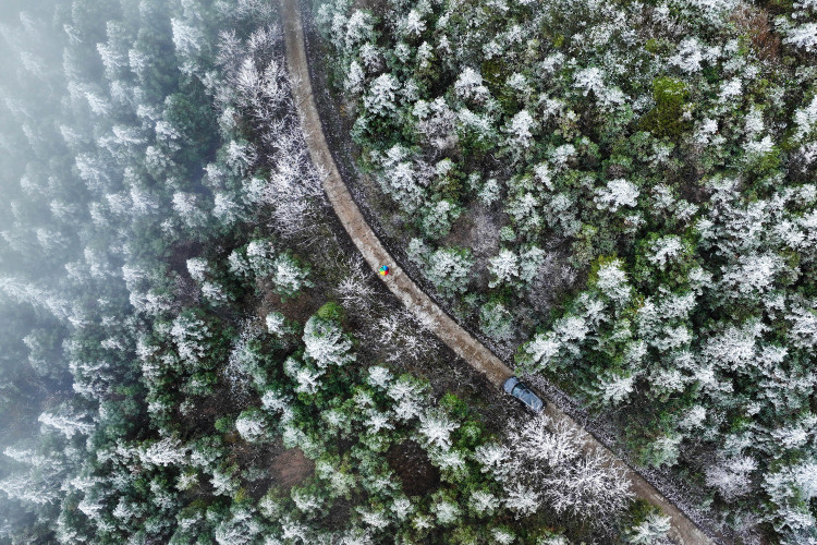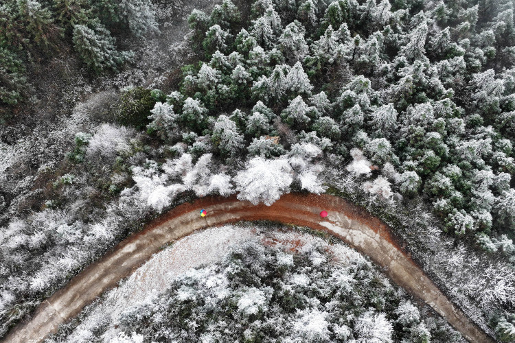 ▲2025年11月18日,黔江區國家森林公園,遊客在灰千梁子景區賞雪。特約攝影 楊敏