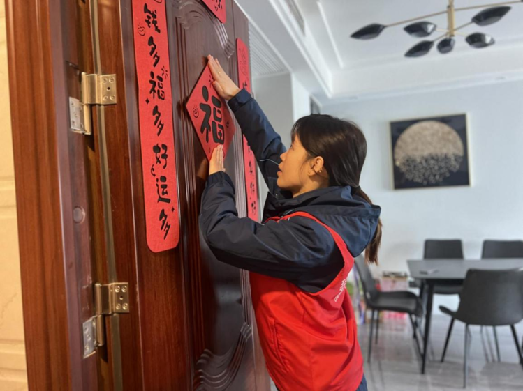 志願者為老人住所張貼春聯 供圖 碧桂園服務重慶