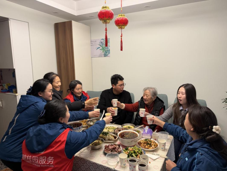 近年來,碧桂園服務重慶黨群志願服務隊同心聯動,始終心繫服務小區內老年群體的生活冷暖。2026年除夕前夕,各黨群志願服務隊在所服務小區上門為老年群體精心準備團圓飯、陪嘮家常、送上新春祝福,以暖心行動讓冬日溫情滿溢。