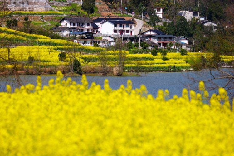 ▲3月4日,黔江區,油菜花掩映著阿蓬江畔阿蓬江鎮大坪村的民居。特約攝影 楊敏
