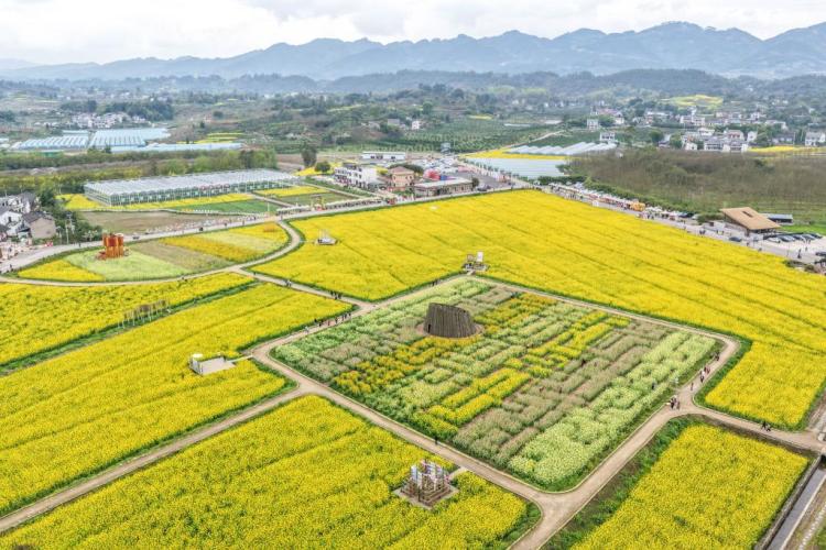 近日,重慶市璧山區七塘鎮將軍村蓮花穴的油菜花田進入盛花期,吸引大批遊客前來踏青打卡。