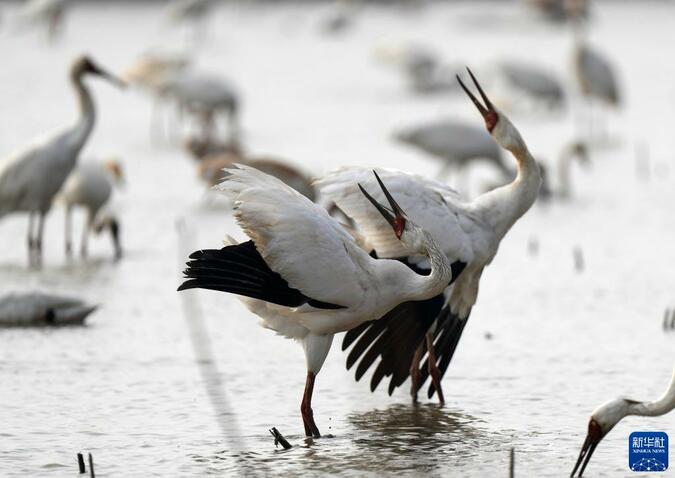 進入冬季,鄱陽湖迎來大批越冬候鳥。最新監測數據顯示,截至11月28日,抵達鄱陽湖的越冬候鳥有63.7萬餘只。其中國家一級保護動物7種,包括白鶴、白頭鶴、黑鸛、青頭潛鴨等。