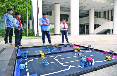重慶巴川量子學校人工智能社團的學生在調試智慧小車。新華社發