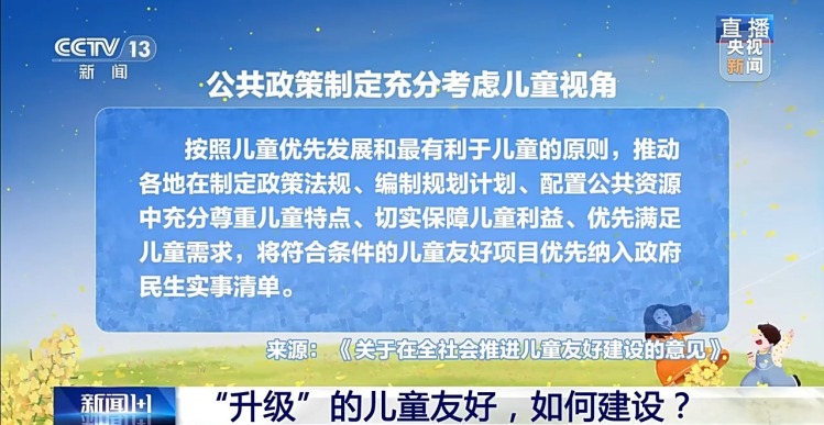 3月17日,國家發展改革委、國務院婦兒工委辦公室對外發佈《關於在全社會推進兒童友好建設的意見》。從五年前的“兒童友好城市建設”試點,到如今我國全面開展兒童友好建設。從城市到鄉村,從階段性建試點到常態化建機制。“兒童友好”升級在了哪?又該如何建設?本期《新聞1+1》為你解讀分析。