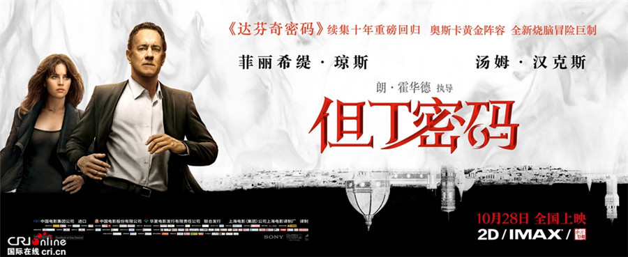 今日曝光的海報將影片的緊張感全盤托出。湯姆·漢克斯與菲麗希緹·瓊斯兩位主演神情肅穆向前奔跑,似乎正疲於應對史上最嚴峻的瘟疫陰謀,懸念的設置讓人對即將到來的驚險情節充滿各種猜想。海報下方,依稀可見一座城市倒懸在黑色的剪影中,預示著兩人將馬不停蹄地翻遍整個佛羅倫薩,在但丁等大師的藝術作品中尋找蛛絲馬跡,試圖瓦解瘟疫病毒毀滅人類的陰謀。兩人背後浮現的白霧則象徵重重謎團。整幅海報呈現出濃厚的神秘色彩與緊張氛圍,令影片燒腦冒險風格呼之欲出,讓人過目難忘。