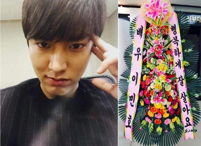 國際在線專稿:據韓國《亞洲經濟》報道,據韓國某網絡社區消息,演員李敏鎬曾為粉絲婚禮送上花環。2015年,某粉絲在粉絲簽名會上向李敏鎬問道結婚選擇哪一天比較好,並拜託他在三個日期進行選擇,最後李敏鎬選了2016年3月。該名粉絲最終“聽從”偶像意見,選擇在3月12日結婚,並向李敏鎬經紀公司發去了手寫信及邀請函。令她大為驚喜的是,李敏鎬在其結婚當天將花環送到了婚禮現場,還祝福稱“幸福地好好生活”。對此,網友紛紛表示,飯上這樣一個偶像是太幸福的一件事。