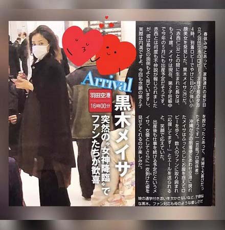 黑木梅紗今年即將在5月邁入29歲,同時也將迎接第二個寶貝出世,據日本媒體報道,挺著8個月大肚子的她,在3月底某天下午4點,從家鄉沖繩飛抵羽田機場,她戴著口罩低調現身,不過面對旅客上前談話,還是大方親切地做出回應。她雖然穿著寬鬆長板大衣,但巨肚還是非常明顯,唯一不變的是她依舊顯瘦的巴掌臉跟纖細四肢。
