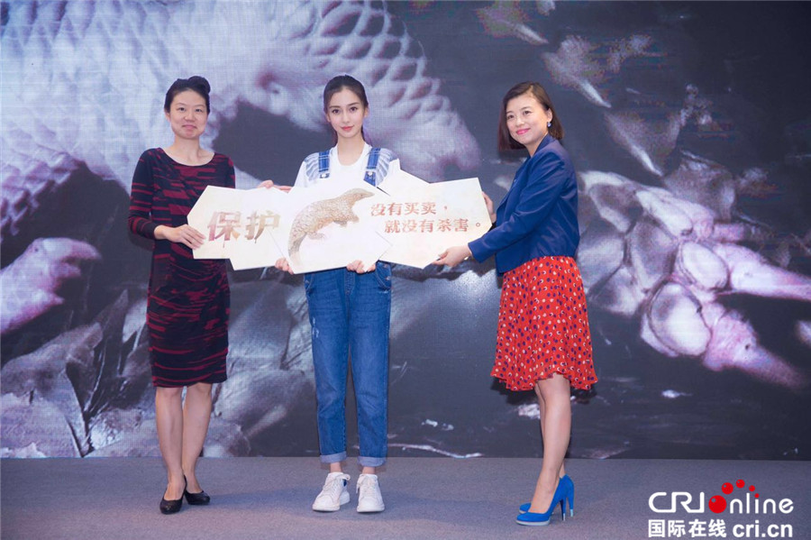 演員楊穎以野生救援公益大使的身份出席國際公益組織野生救援(WildAid)新聞發佈會,呼籲大家,保護穿山甲從你我做起。