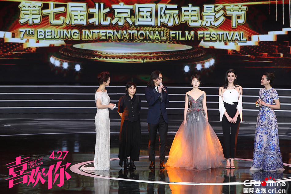 昨日,由陳可辛、許月珍監製,許宏宇執導,金城武、周冬雨、孫藝洲、奚夢瑤等聯袂主演的愛情喜劇電影《喜歡你》,甜蜜亮相第七屆北京國際電影節開幕式。監製許月珍、導演許宏宇攜主演周冬雨、奚夢瑤亮相開幕式,與現場觀眾媒體見面交流。這是北京國際電影節首次選擇新生導演處女作作為開幕影片,彰顯了電影節對於華語電影新生力量的大力扶持。