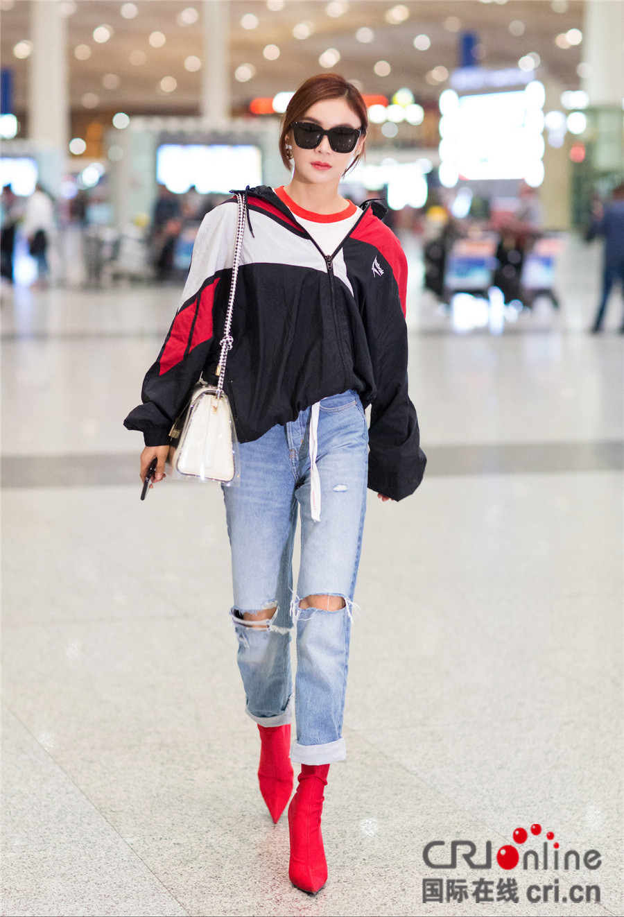 近日,袁姍姍現身機場,全程呈現超感染力笑容,化身元氣·姍。當天,袁姍姍身著運動經典外套,與紅色高跟鞋混搭,毫無違和感。而外套紅黑白拼接的顏色,仔細看竟撞色經典校服色,變成了不規則的穿法,竟顯復古與時尚。