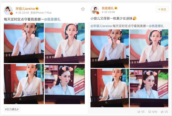 正在熱播的《花少3》中最小的“團寵”宋祖兒近日在微博上曬出《擇天記》中娜扎的截圖,還給娜扎上了萌萌噠兔耳朵,配文道:“每天定時定點守著我美娜”並@了娜扎。不久娜扎就轉發:“小容兒又俘獲一枚美少女迷妹”。兩人甜蜜互誇,看來祖兒也被娜扎的美貌征服,感情非常不錯。