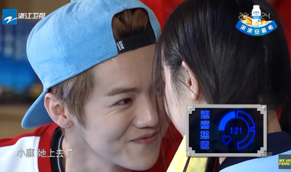 據台灣媒體東森新聞雲報道,綜藝節目《奔跑吧》最新一期中,分為男女兩隊互相PK,其中一個環節雙方派出代表,在5分鐘內用各種方法使對方心跳上升,心跳數值較低者獲勝,當鹿晗與迪麗熱巴作為代表登場時,高顏值唯美畫面讓觀眾都心動了,播出隔天立刻成為網友熱搜話題。