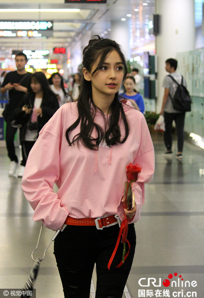 近日,Angelababy亮相機場離開廈門,她身著粉色衛衣、搭配黑色牛仔褲,手持粉絲贈送的紅色玫瑰,走在機場內實力演繹“人比花嬌”。面對鏡頭,baby微笑回頭揮手告別,十分親切。