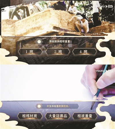 紀錄片相對小眾,知識性遠遠大於娛樂性,尤其是有些作品中知識呈現方式的無趣加深了與大眾的隔閡,最後知識的傳達率也難以考察。但在互動紀錄片中,知識的接受甚至變成一種強制性的沉浸行為,因為觀眾自己必須做選擇題。比如《古墓派·互動季》中重回當年的考古現場,你是“就地開棺”還是“運回實驗室”?甚至還有一些更專業的互動,在第三集《致命死因》中,觀眾需要判斷這兩具屍體的死因,究竟是死於吞金、投毒,還是別的原因呢?不同的選擇會觸發不同的劇情或者醫學解讀。