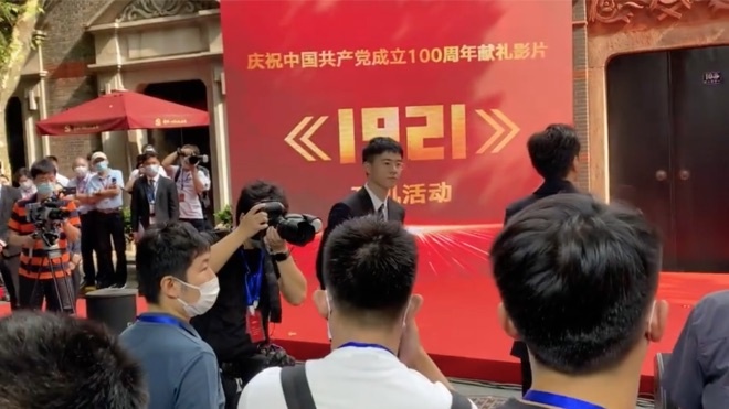 7月1日,有網友在微博發佈路透,慶祝中國共産黨成立100週年獻禮影片《1921》在上海中共一大會址舉辦開機儀式,黃軒、倪妮、王仁君、劉昊然等主演出席。