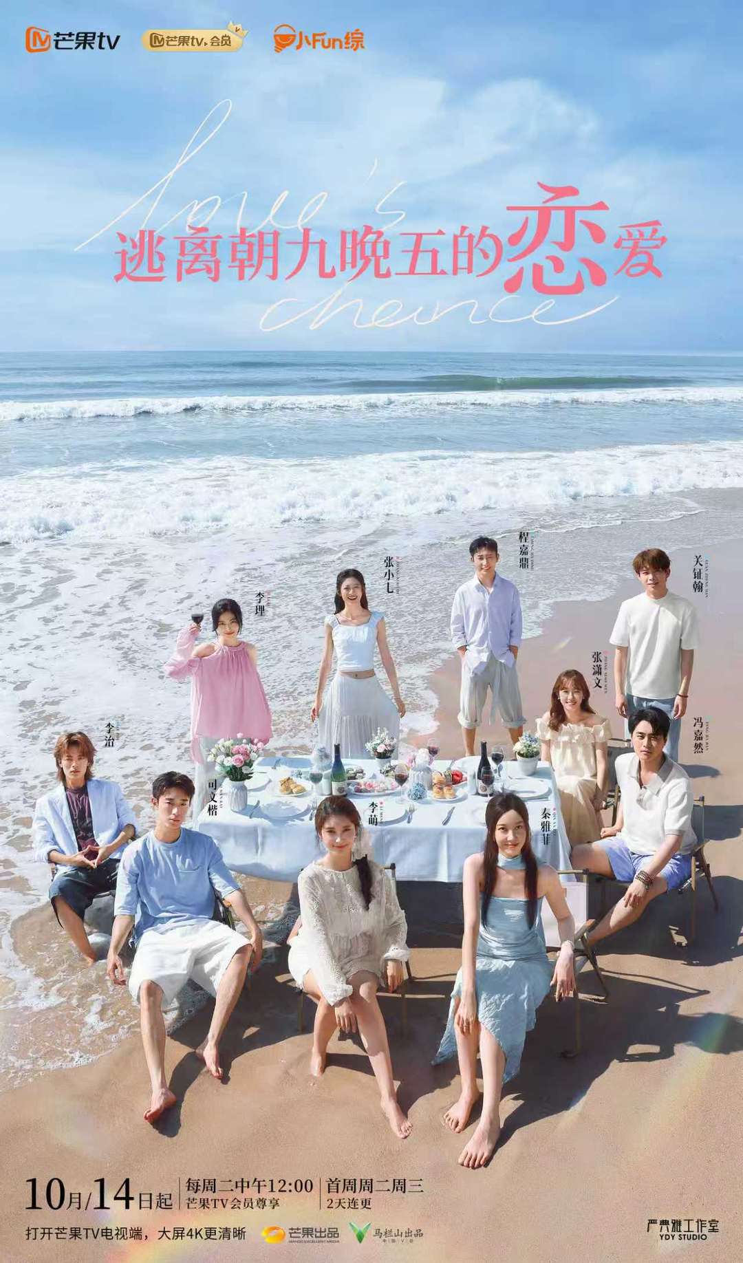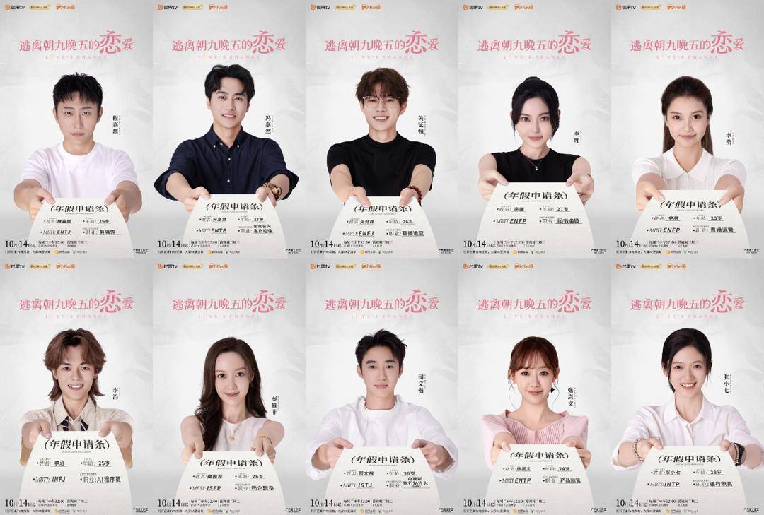 10月14日,芒果TV自製城市打工人戀愛真人秀《逃離朝九晚五的戀愛》浪漫開播,節目打破集體合宿模式,用“旅行獨居+敲門約會”的首創模式,邀請十位單身的打工人,展開利用五天年假邂逅愛情,並在五天通勤日繼續愛情補完的真實治愈愛情之旅。