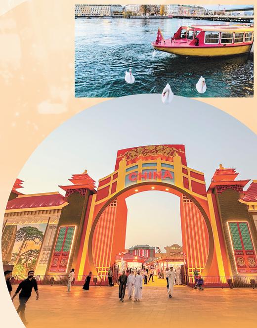 下圖:阿聯酋迪拜地球村于每年10月到次年4月下午4時至晚上12時運營,目前已發展成為擁有30個國家主題展館,集美食、集市、娛樂設施和文化演出為一體的休閒目的地。圖為迪拜地球村中國主題展館。