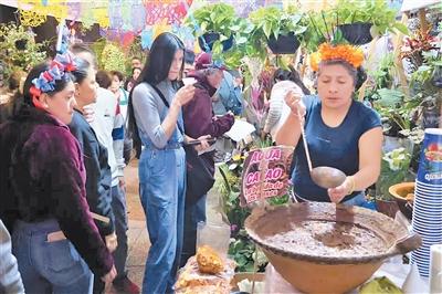 改革大道是墨西哥首都墨西哥城的主要商業街,這裡的夜市為都市日常增添了濃郁的煙火氣息與多元文化氛圍。圖為一處可可飲料攤位。
