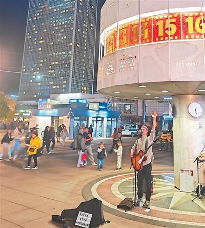 德國首都柏林以多元文化著稱,藝術生活是該市“夜經濟”中最為重要的一環。圖為柏林亞歷山大廣場世界鐘下,街頭藝人正在縱情高歌。