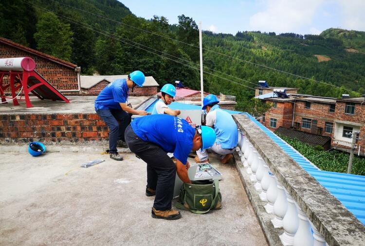 中國電信員工正在安裝直放站 供圖 田林縣脫貧攻堅戰指揮部宣傳組