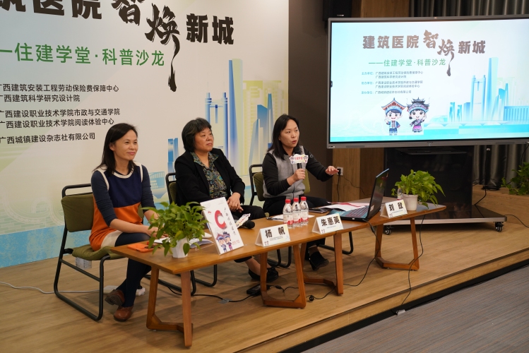 11月21日,由廣西建築安裝工程勞動保險費保障中心、廣西建築科學研究設計院主辦,廣西城鎮建設雜誌社有限公司承辦的“建築醫院智煥新城——住建學堂·科普沙龍”在廣西建設職業技術學院舉辦,廣西壯族自治區建築科學研究設計院副院長楊帆、廣西建設科技與建築節能協會會長朱惠英和上海天與智慧養老服務有限公司總經理劉欣3位專家,圍繞“‘建築醫院’煥新城市,科技賦能安居民生”主題,與現場50名學生進行案例分享與互動交流。
