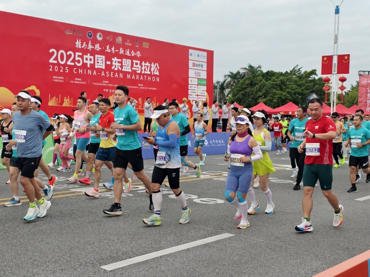 11月23日,由廣西壯族自治區體育局、防城港市人民政府聯合主辦的2025中國—東盟馬拉松在防城港市北部灣海洋文化公園鳴槍起跑。來自中國和東盟國家的15000名參賽選手齊聚防城港,用腳步丈量這座全海景生態海灣城市的城市脈搏。
