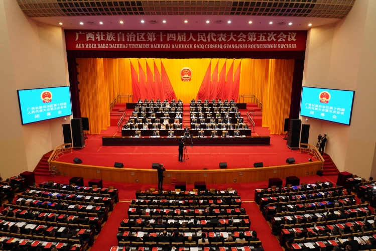 2月6日上午,廣西壯族自治區第十四屆人民代表大會第五次會議圓滿完成各項議程,在廣西人民會堂勝利閉幕。