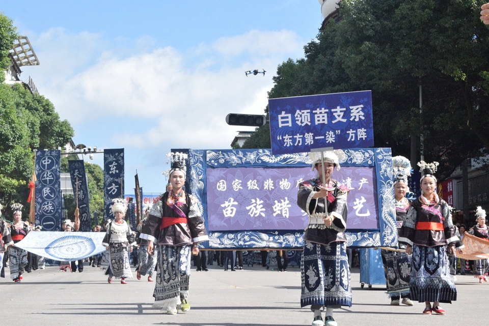 非遺盛裝巡遊展現場,8000多人共同展演,不僅展出黔東南多個縣份的非遺,還邀請廣東醒獅、佛山咏春拳、十番音樂、福建遊神等國家級非遺助力,通過豐富多元的非遺展示和互動體驗活動,將本土非遺和全國非遺結合起來,讓群眾深入了解非遺、直面傳統技藝,提升非遺保護的意識,打造貴州民族文化品牌,傳承城市歷史文脈。(文 墨晗)