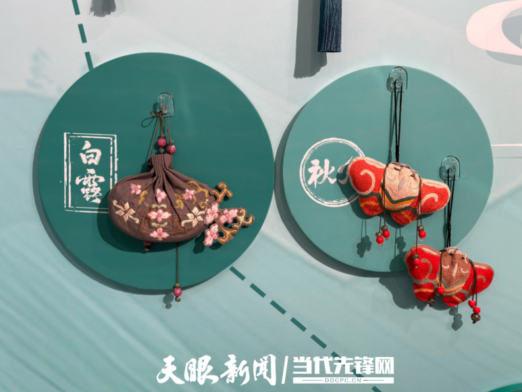 據介紹,展品《24節氣香包》曾亮相中非合作論壇峰會中國傳統文化和婦女教育成果展,贏得各國嘉賓的廣泛讚譽。該展品極具貴州遵義仡佬族特色,繡娘根據24節氣特點,在每個節氣裏繡制出不同香包,以純棉布為底,憑獨特技藝,讓每件作品成為不可複製的文化載體。