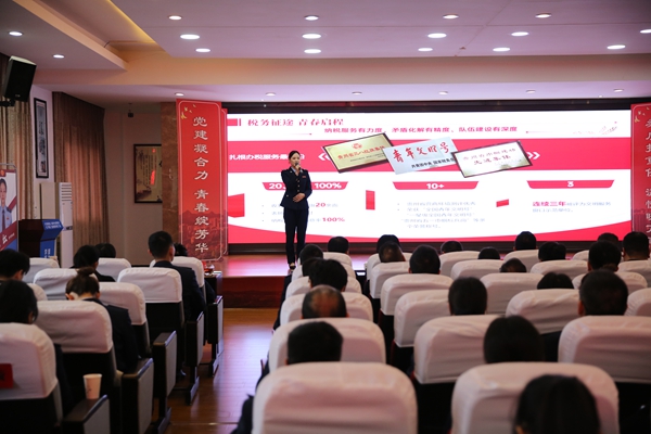 活動現場,畢節市稅務系統的10支優秀青年宣講隊伍依次上臺,以“青年説·先進典型宣傳講述”為主題,圍繞“實幹擔使命 家國映初心”“黨建凝合力 青春綻芳華”“柔肩擔重任 溫情暖萬家”和“石榴結同心 苔花暖民心”幾個篇章,分享了畢節市稅務局陳紅守“小家”、護“大家”,用孝心溫暖家庭,用敬業奉獻社會,用善意點亮身邊的每一寸角落。