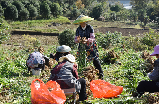 作為文明村特色産業之一,生薑種植不僅帶來了好“錢” 景,也讓當地村民擁有了增收致富的“金鑰匙”。“從姜種排布、田間除草,到病蟲害防治、後期采收,我們每個月都會雇用很多本地群眾參與管護呢!”正在田埂邊分揀生薑的種植大戶楊致勇語氣裏滿是自豪,他介紹,到了采收季節,他們的用工需求會大幅上升,最多時一天有80多人在基地工作,每人每天可領取80至100元工資。