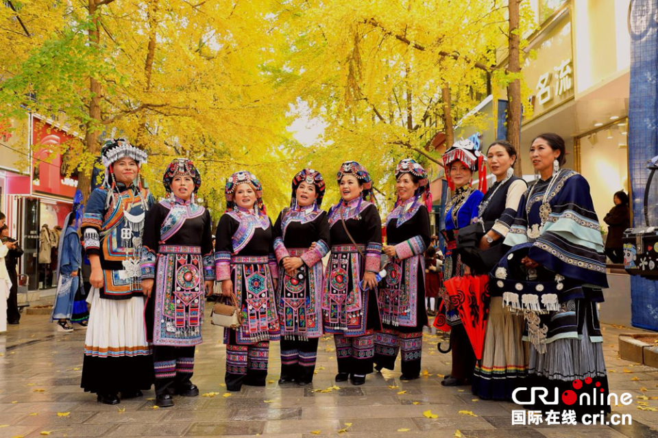 彝族婦女在銀杏樹下盡情歌唱 攝影 楊展淩