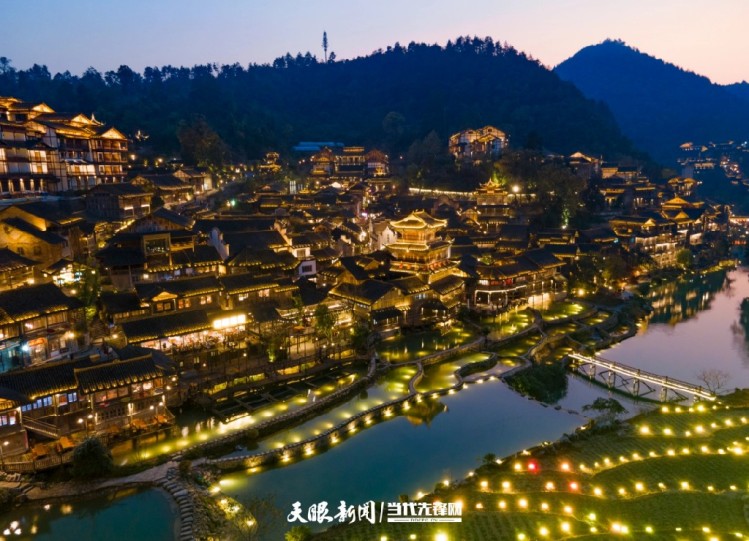 2025年11月29日,遵義市播州區烏江寨景區夜景美如畫。