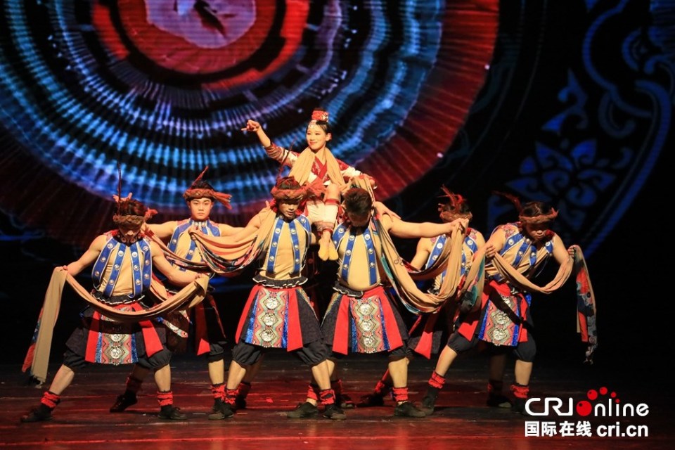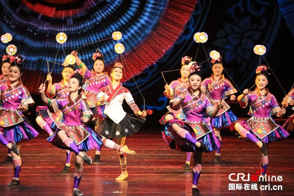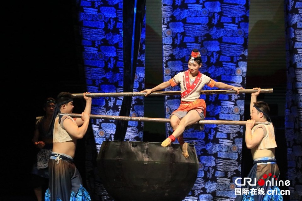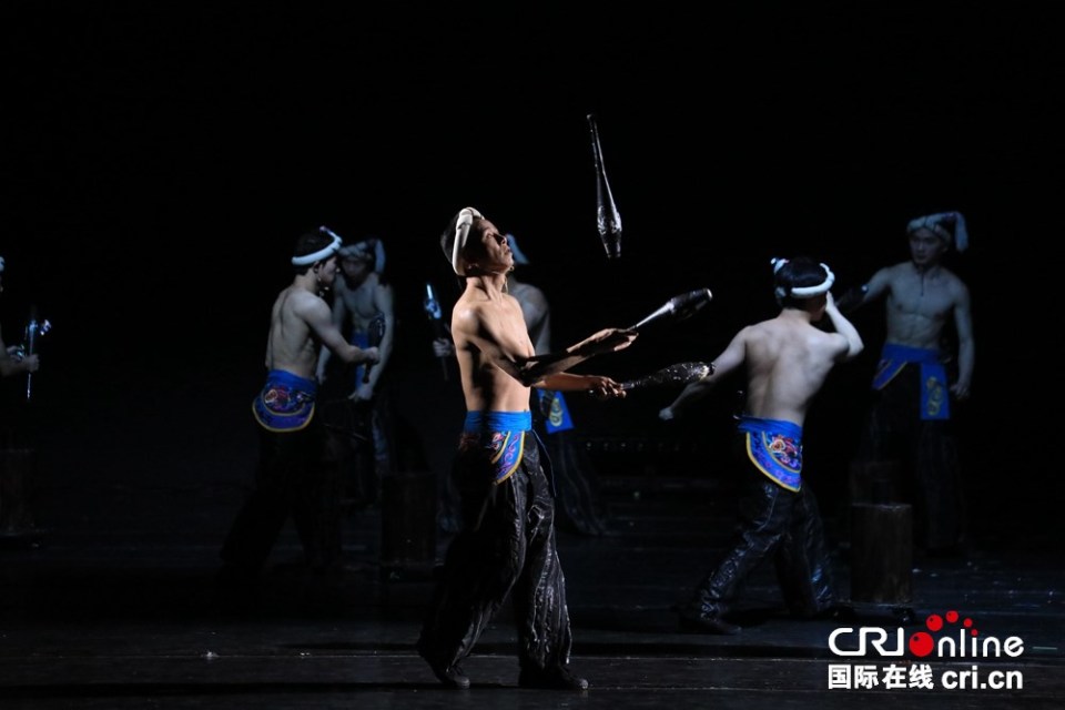 作品通過草帽、蹬鼓、空竹等傳統雜技技巧的現代化演繹,將非遺技藝轉化為可感知的舞臺語言。觀眾在驚嘆于高空綢吊的驚險、蹬鼓騰躍的力度、空竹旋舞的韻律之餘,更能深刻感受苗族文化的獨特魅力。