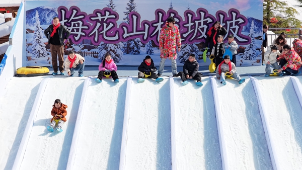 遊客在梅花山滑雪場體驗滑雪 供圖 鍾山區融媒體中心