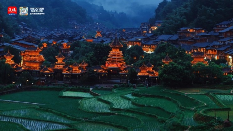 夜晚的肇興化身浪漫不夜城!白鷺湖畔打鐵花驚艷登場,1600℃鐵水化作漫天鐵花雨,湖影相映璀璨奪目;無人機夜空拼出侗族圖騰、鼓樓圖案,傳統與現代絕美交融;魚龍獻瑞,魚燈隊伍穿梭寨中,天燈送福,孔明燈攜願放飛,共映侗寨璀璨夜空。